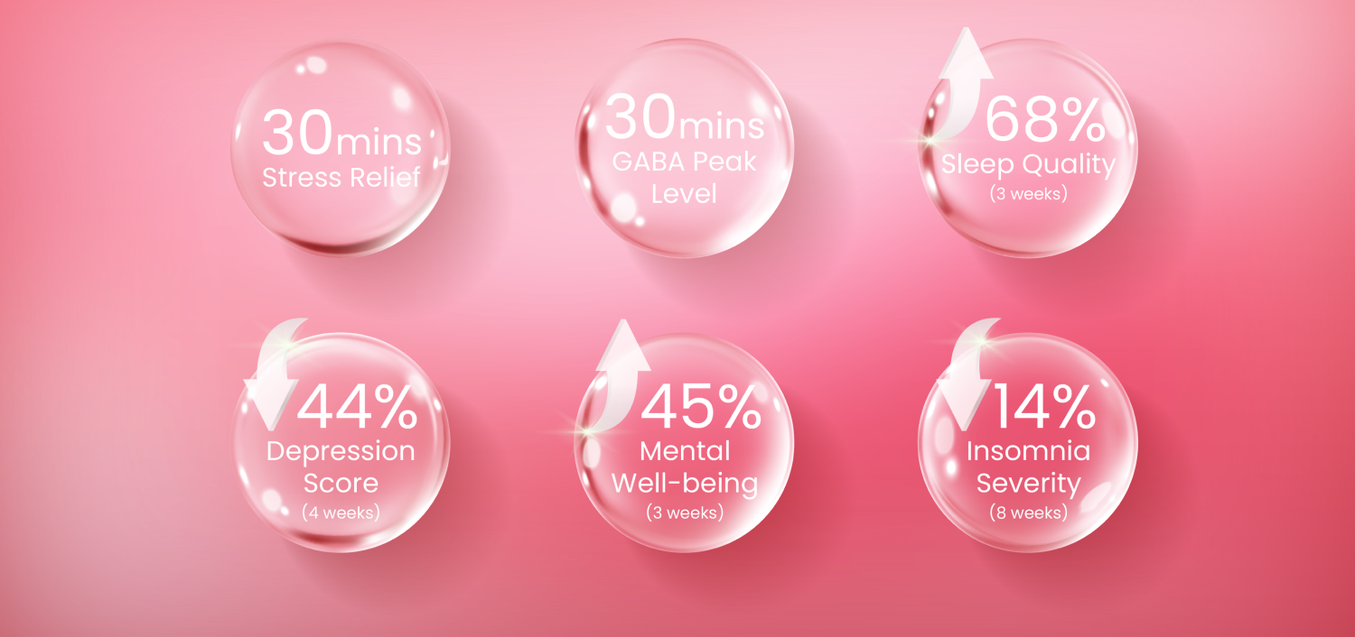 Clinically proven Safr’Inside® saffron extract can help reduce acute stress within 30 minutes, while germinated brown rice powder supports peak GABA levels in the same short time. Together, they provide a fast-acting formula that helps you feel calmer, reduce racing thoughts, and enjoy a gentle sense of ease.