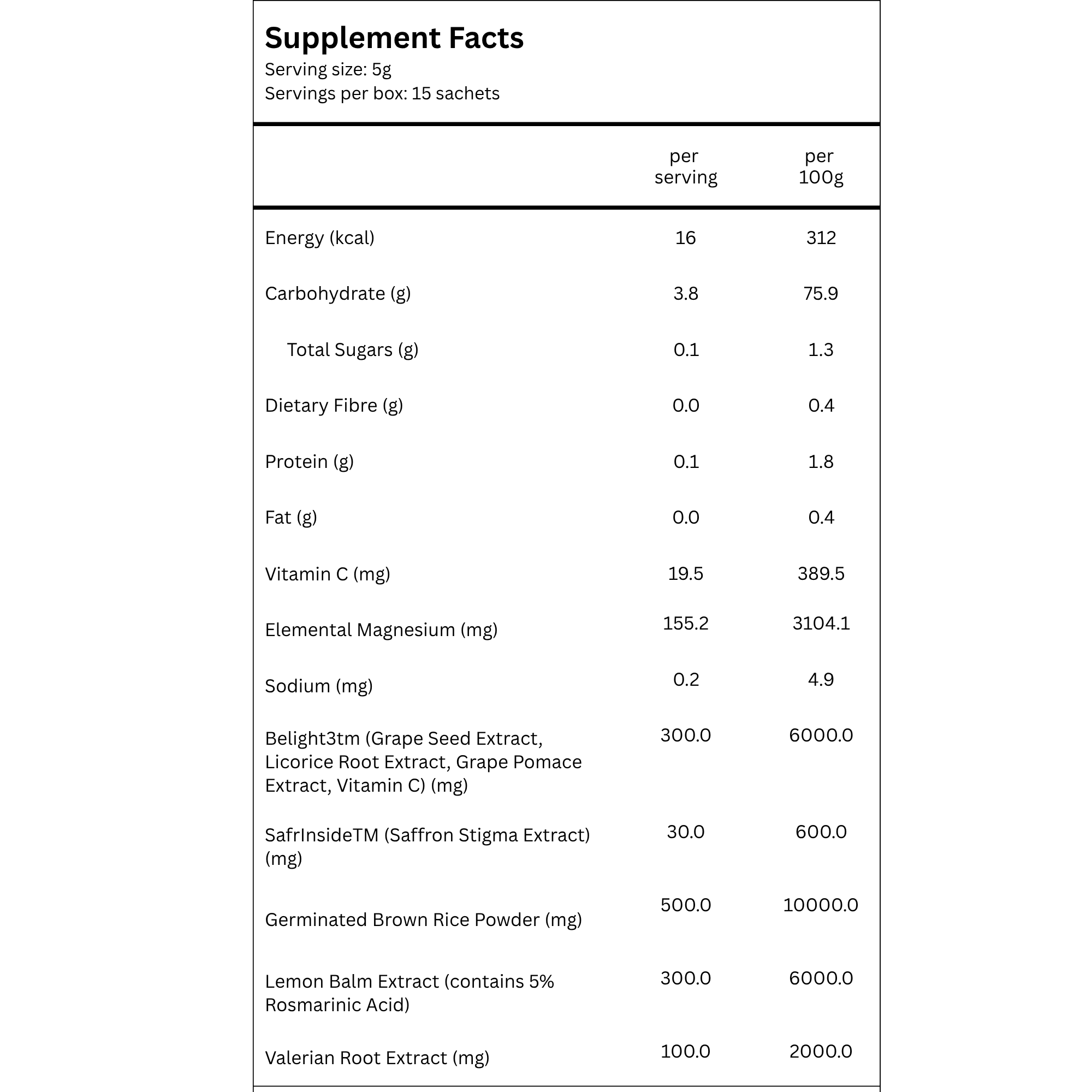 - Germinated Brown Rice Powder & Lemon Balm Extract – Promote calmness, cognitive well-being, and restful sleep.