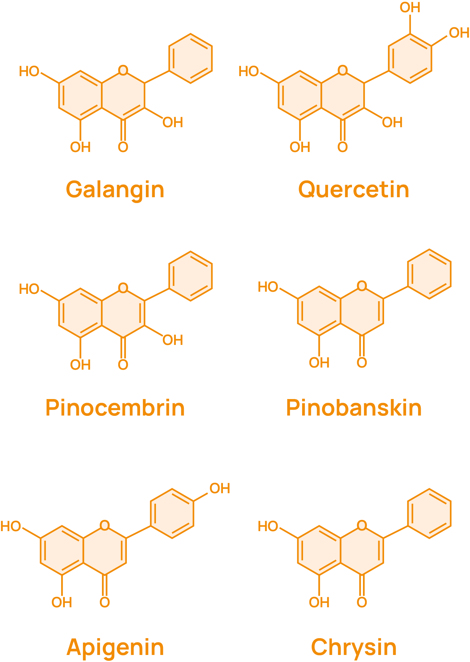 Promunel® proudly standardizes on six major phenolic compounds—galangin, quercetin, pinocembrin, pinobanksin, apigenin, and chrysin—at a minimum concentration of 25% total polyphenol content for optimum potency and efficacy, demonstrating fast-acting results as early as 3 days!